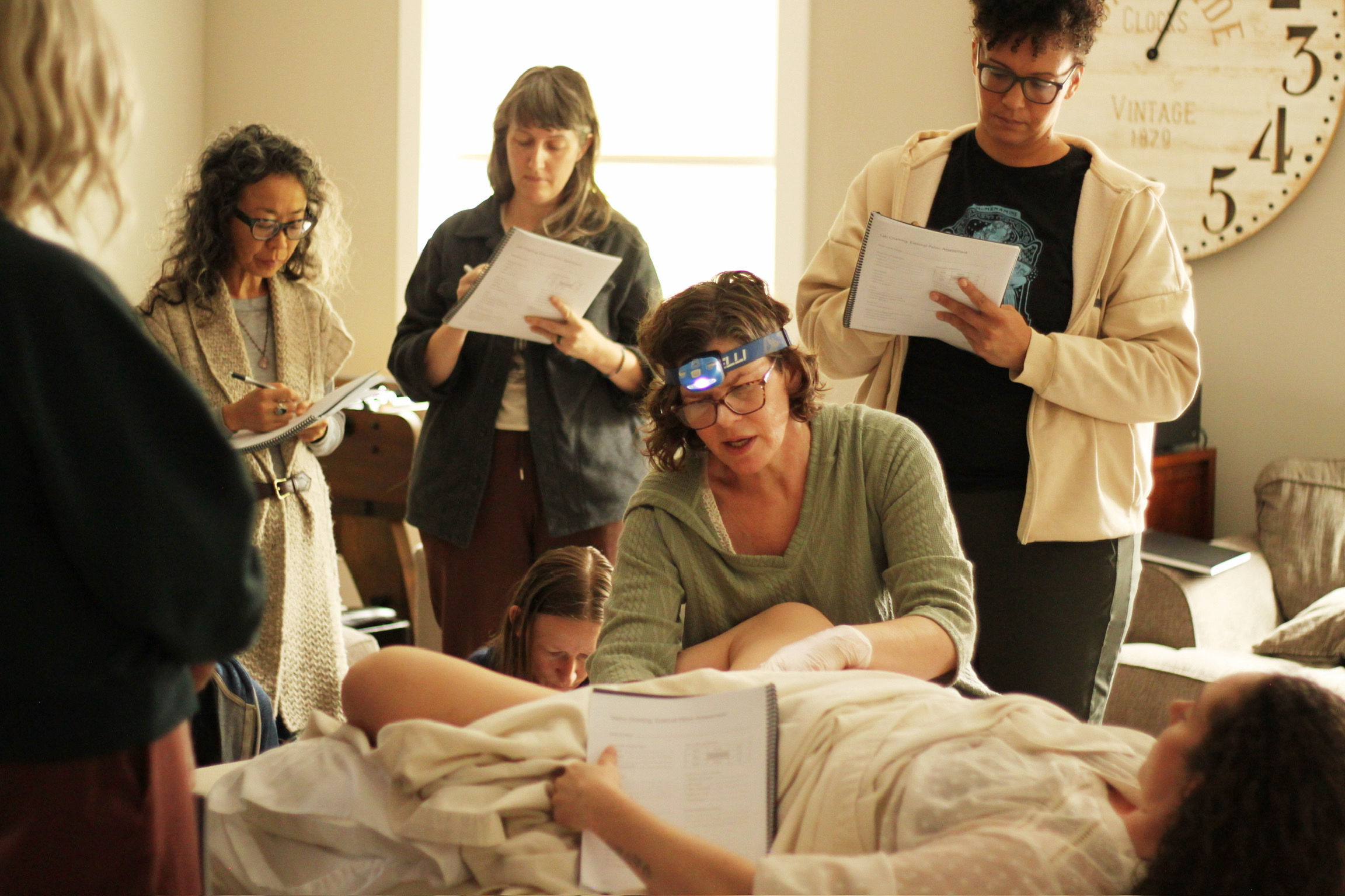- Pelvic palpation and listening skills